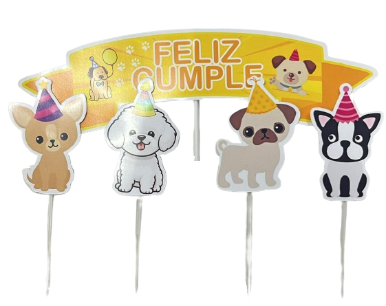 Adorno pinche set feliz cumple perritos x5