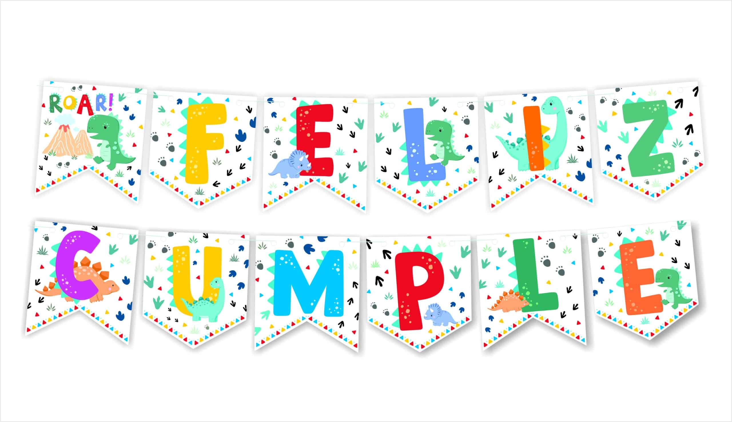 Banderin feliz cumple dino x1