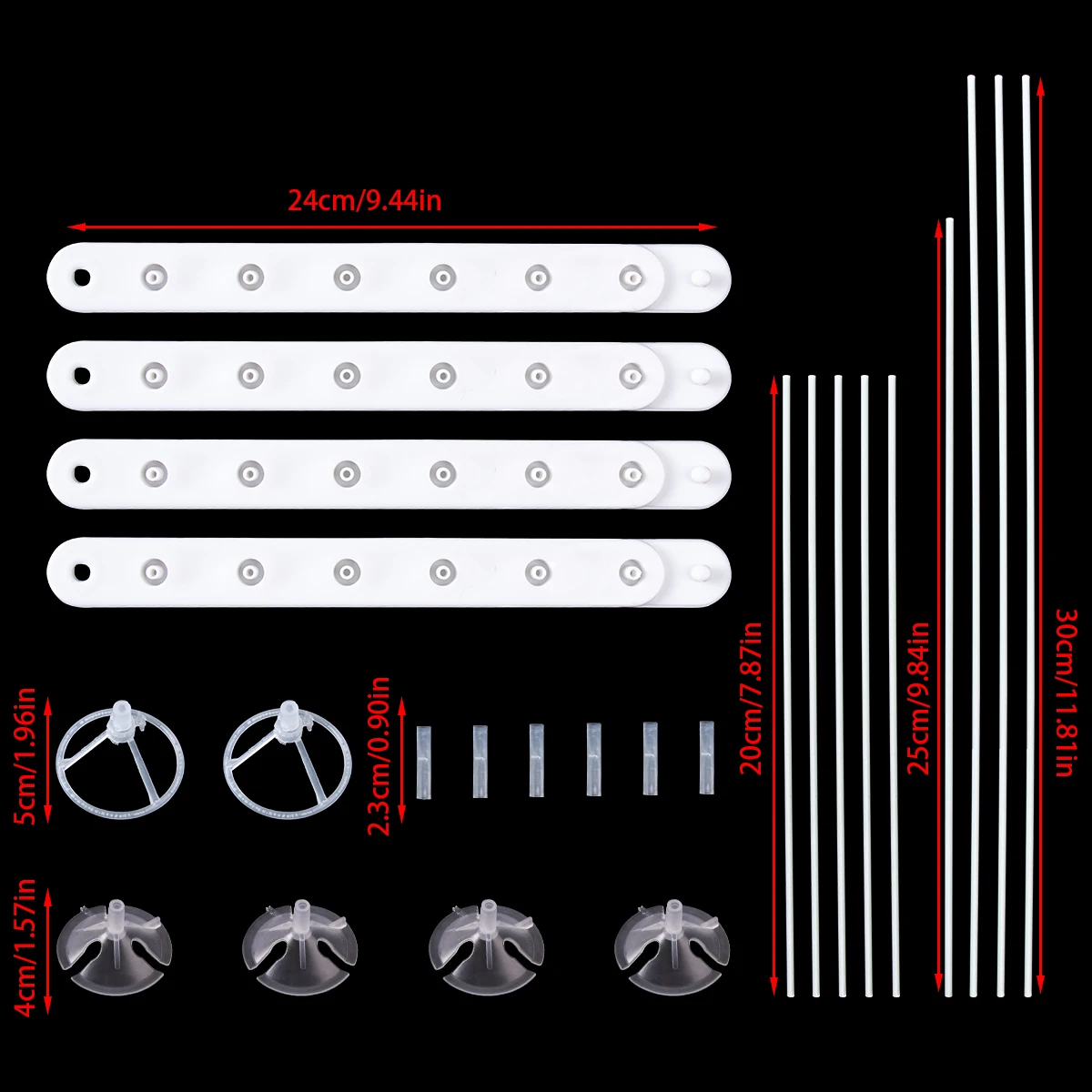9 varillas (3 de 30cm, 1 de 25cm y 5 de 20cm).