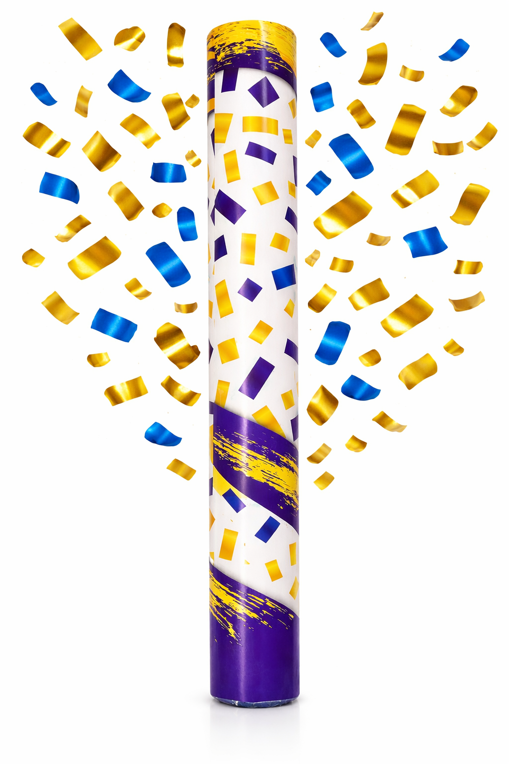 Cañon carioca lanza papelitos metalizados boca azul y dorado 40cm x1