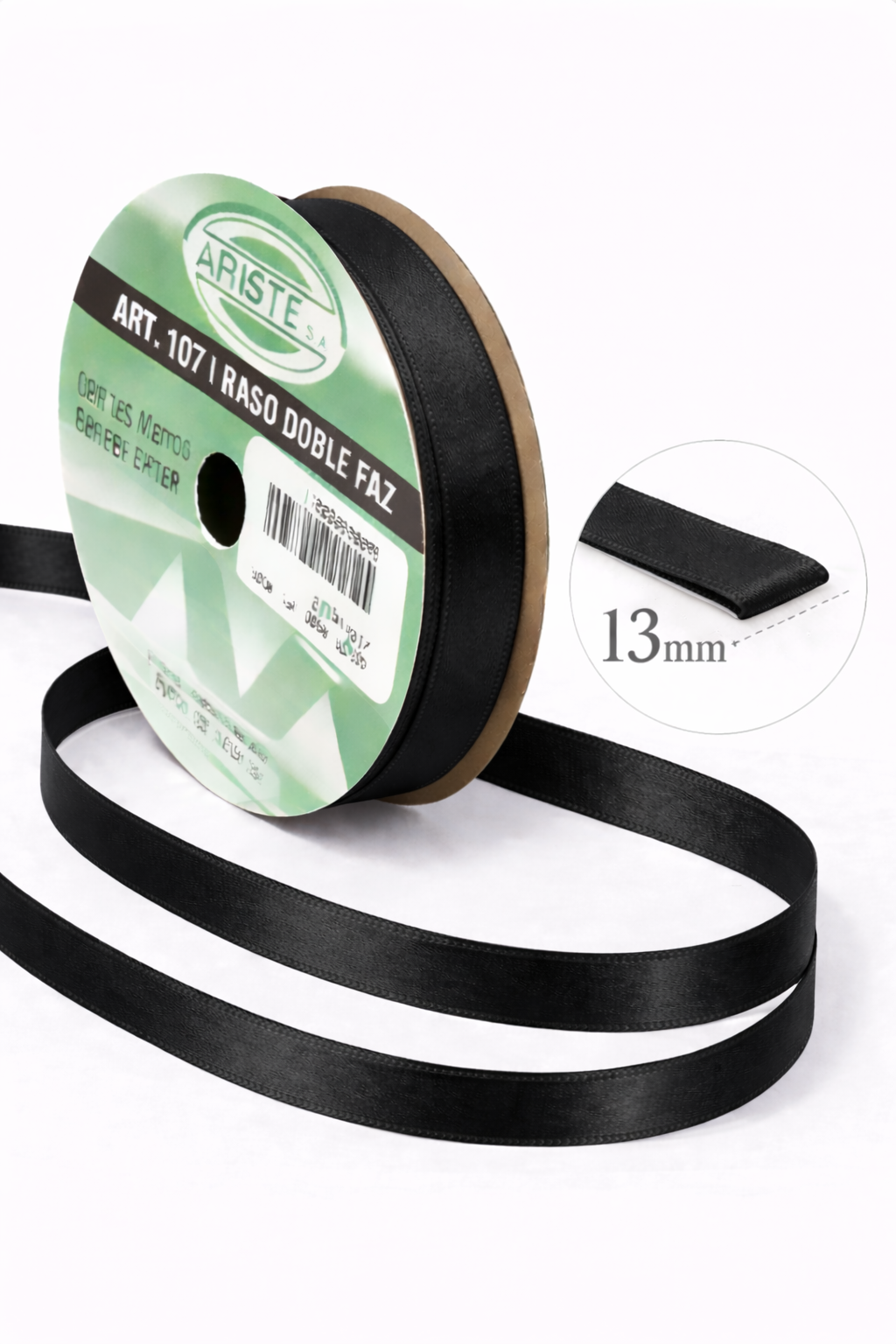 Cinta raso nº3 (13mm aprox) Negro x10mts