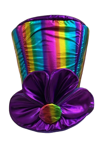 Galera metalizada arco iris con Flor x1