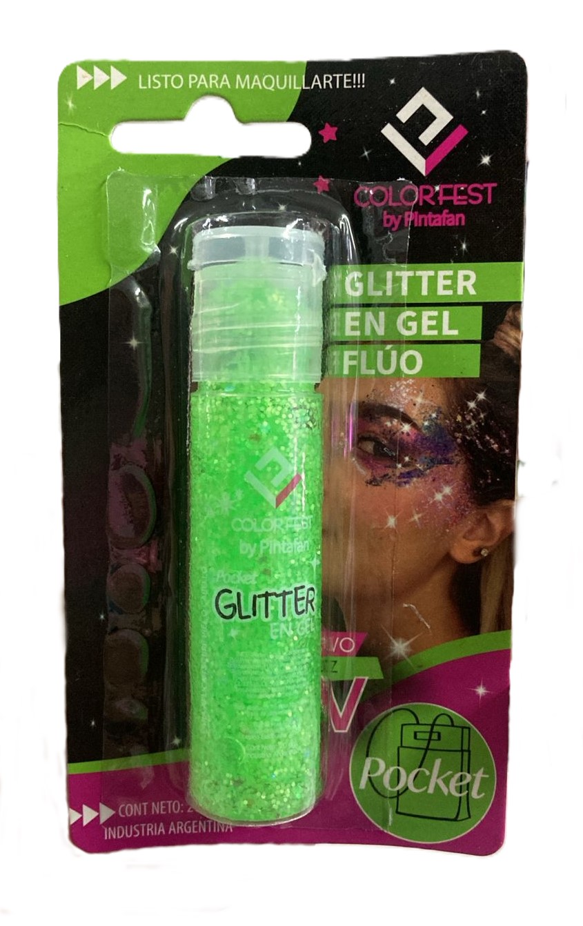 Glitter en gel verde fluo x1