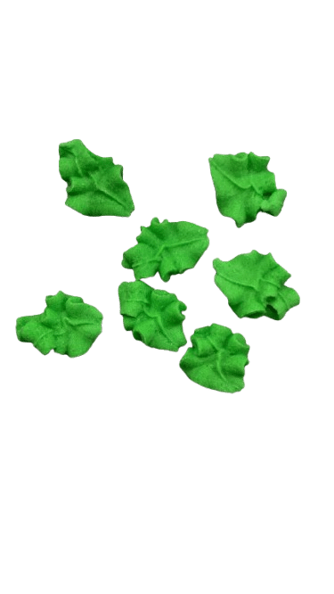 Hojas pequeñas de azucar/pastillaje color verde x100