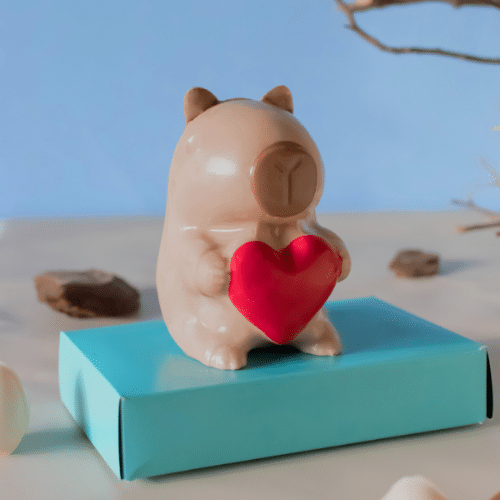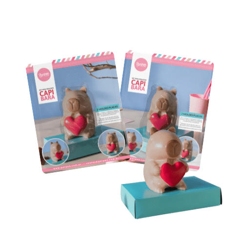 Set compuesto de 2 moldes placas para realizar 1 animalito Capibara con corazón (frente y dorso) en chocolate.