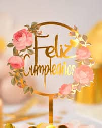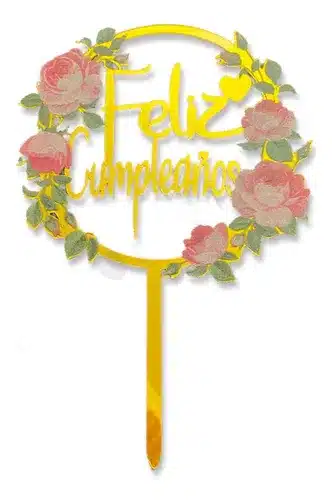 Pinche adorno feliz cumpleaños acrilico floral x1