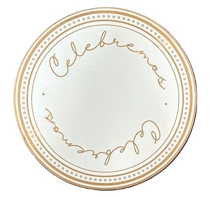 Platos de sitio de papel con frase Celebremos en color blanco con Dorado x20 unidades