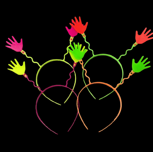 Vincha plastica con antenas de corazon en colores fluo, flexible para adapterse a cabeza de niño o adulto.